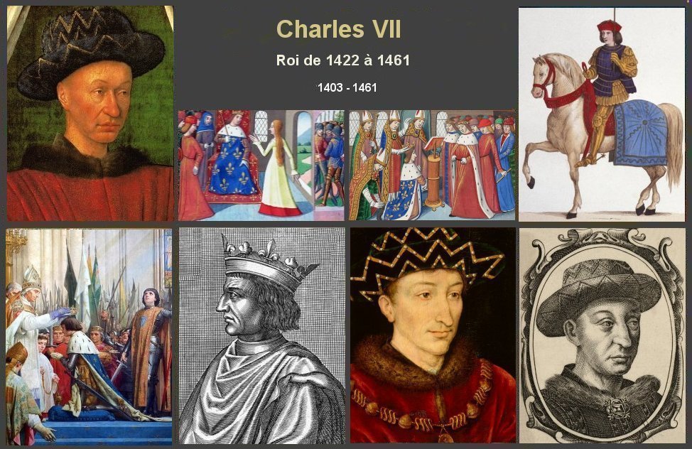 Brève biographie Charles VII, dit « le Victorieux » ou « le Bien Servi », né Paris le 22 février 1403 à l'hôtel Saint-Pol (Cher) Il est le fils du roi Charles VI et de la reine Isabeau de Bavière. Héritier de la couronne de France après la disparition de ses frères aînés Louis de Guyenne en 1415 et Jean de France en 1417 Charles doit prendre son destin en main dès 1418 à l'âge de 15 ans, en fuyant les Bourguignons venus le capturer à Paris, et en se réfugiant à Bourges, capitale des Armagnacs. En pleine guerre de Cent Ans, il s'agit de contrecarrer les plans pro-Anglais fomentés par Charles VI, atteint de sénilité mentale, et de casser le traité de Troyes de 1420 qui entendait livrer le royaume de France à la dynastie anglaise des Plantagenêt. Naissance de Louis XI à Bourges en 1423, futur roi de France fruit de l'union de Marie d'Anjou et de Charles VII. Deux personnages providentiels interviennent activement auprès de Charles VII : Jeanne d'Arc, en prenant le siège d'Orléans et en ouvrant la route du sacre royal à Reims le 7 juillet 1429, puis Jacques Cœur, un riche négociant banquier établi à Bourges, en reconstituant les institutions monarchiques (levée automatique de l'impôt, composition d'une armée permanente). En 1435, par le traité d'Arras, Charles VII se réconcilie avec les Bourguignons De 1449 à 1453, il reprend successivement la Bretagne, la Normandie et la Guyenne, mettant ainsi fin aux conflits engagés depuis 1337 entre les Valois et les Plantagenêt. Le Roi met fin à la guerre de Cent Ans en 1453 Charles VII meurt le 22 juillet 1461 dans sa résidence royale de Mehun-sur-Yèvre, près de Bourges (Cher)