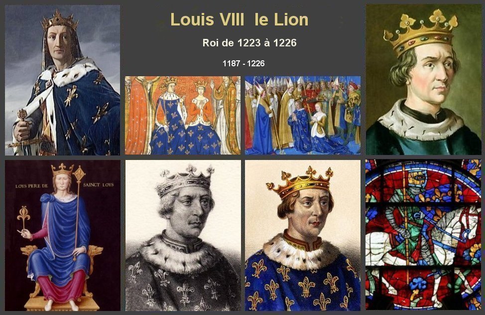 Brève biographie Louis VIII dit « le Lion » est né le 5 septembre 1187 à Paris Il est le fils du roi Philippe II Auguste » et d'Isabelle de Hainaut Il est surnommé « le Lion » en raison de sa cruauté et sa vaillance au combat Il épouse le 23 mai 1200 Blanche de Castille, fille du roi Alphonse VIII de Castille et d'Aliénor d'Angleterre Son père lui confiera souvent le commandement des armées royales. I Suite au décès de son père Philippe II il se fait sacrer Roi à Reims, à l’âge de 36 ans, avec sa femme Blanche de Castille, le 6 Août 1223 Il prend les armes contre le jeune Roi d'Angleterre Henri III qui prétendait à la restitution des biens des Plantagenêt en France, puis achèvera la conquête du Poitou. Louis VIII s'empare de Niort et de La Rochelle avant d'échouer devant les remparts de Bordeaux. Le Roi, qui veut en finir avec l'hérésie Cathare, conduit la 3ème Croisade contre les Albigeois en (1226). Il rédige son testament avant de partir, dans lequel il constitue des apanages au profit de ses fils cadets, puis quitte Bourges le 26 Mai afin de s'emparer des possessions du comte de Toulouse. Les principales villes du Languedoc se rallient sans résistance, à l'exception de Toulouse. Les Cathares qui refusent d'abjurer leur foi seront brûlés sur un bûcher, conformément à la "1ère" ordonnance signée en France et datée de 1226. Une assemblée réunie à "Pamiers" attribuera à la couronne les fiefs confisqués. Louis VIII, qui renonce à prendre Toulouse, rentre à Paris. Louis VIII meurt le 6 novembre 1226 à Montpensier (Puy-de-Dôme) Son fils Louis IX Saint Louis lui succèdera