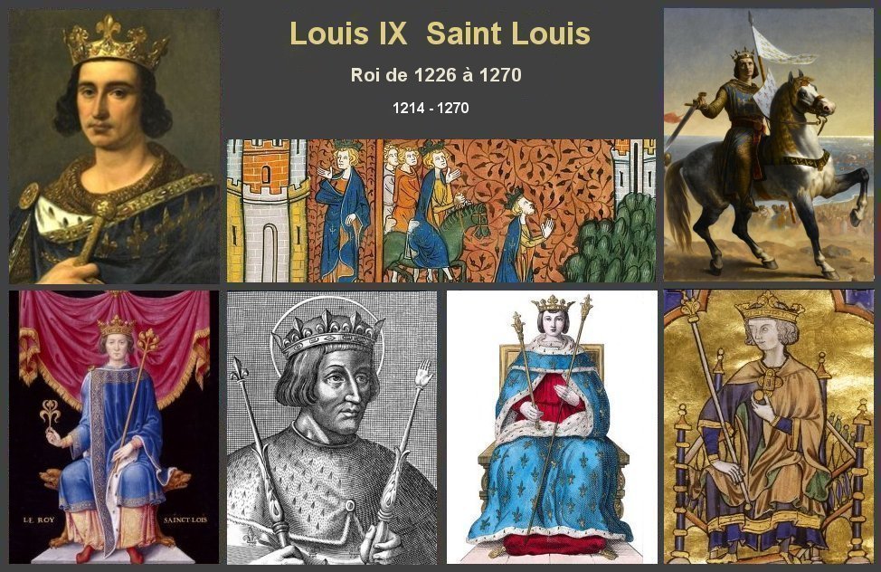 Brève biographie Louis IX parfois dit « le Prud'homme » est plus communément appelé Saint Louis Il est le second fils du roi Louis VIII et de la reine Blanche de Castille, qui lui donne une éducation stricte et très pieuse Âgé de 12 ans, et aîné des survivants de la fratrie, il hérite du trône à la mort de son père. Quoiqu’il soit sacré roi le 29 novembre 1226, c’est sa mère qui exerce la régence. Louis IX coiffe officiellement la couronne à sa majorité, le 25 avril 1234. La même année, il épouse Marguerite de Provence. Louis IX met fin au conflit centenaire qui oppose Capétiens et Plantagenêts et consolidant sa souveraineté C’est un roi de France réformateur, qui rompt avec l’époque féodale pour faire passer le royaume au stade de monarchie moderne. Il porte une attention particulière à la justice, instaurant la présomption d’innocence, et veille à l’extension du domaine royal. Son règne est également marqué par d’importantes réformes monétaires, la monnaie royale pouvant désormais circuler dans tout le royaume. La Sainte-Chapelle, dans l'île de la Cité de Paris, est consacrée en 1248 afin d'abriter la couronne d'épines et d'autres reliques de la Passion du Christ Très pieux, il organise la septième croisade en 1248. Essuyant une défaite cuisante à Mansourah, en avril 1250, il est fait prisonnier et ses geôliers.. Après avoir payé une rançon il est libéré en 1250. Le roi et son armée entrent à Paris le 7 septembre 1254 après six années de croisade En 1259 Le roi d'Angleterre Henri III Plantagenêt signe avec le Roi le traité de Paris avec des concessions réciproques Louis IX est surnommé « le Prudhomme », terme désignant un caractère sage, droit, franc, mesuré et généreux : des vertus que l’on prête au roi. Elles lui valent d’être considéré comme un saint de son vivant. Louis IX décède le 25 août 1270 à Tunis lors de la VIIIème Croisade. Philippe III son fils, qui avait été préparé à régner, lui succède