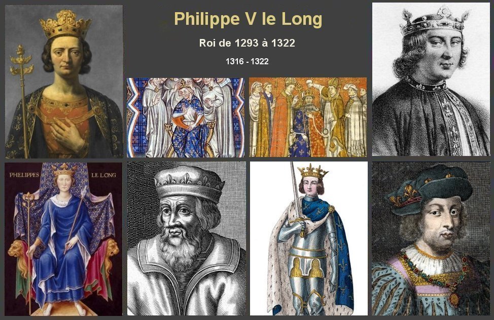 Brève biographie Philippe V dit « le Long » est né vers 1293 à l' Abbaye royale de Longchamp (Paris). Roi de France de 1316 à 1322, c'est le quatorzième des Capétiens directs. Il est également le premier de cette dynastie à ne pas avoir hérité du titre de roi par son père, mettant fin au « miracle capétien ». Il est l'arrière-petit-fils de Louis IX Saint Louis et le second fils de Philippe IV le Bel et de Jeanne de Navarre En 1307 il épouse, Jeanne, la fille aînée de Othon IV, le comte de Bourgogne. Son frère aîné Louis X qui hérite de la couronne en 1314 décède en 1316, Philippe obtient alors de la régence du royaume. Philippe se fait sacrer à Reims le 9 janvier 1317, il prend le nom de Philippe V. Pour entériner sa légitimité, il convoqua les États-Généraux à Paris en 1317. Sa légitimité est remise en cause, les partisans de Jeanne, la fille de feu Louis X, revendiquent la couronne. Il invoquera une vieille loi salique remontant au haut Moyen-âge pour faire valoir ses droits. Homme dure aux qualités d’homme d’État indéniables, il lance un grand nombre de réformes administratives Puissant et populaire, il demeura un véritable roi réformateur. Au début de son règne, il viendra à bout du conflit qui l’oppose au comte de Flandres. Même conflit avec le roi d’Angleterre Edouard II. La Guerre de Cent Ans n’était pas loi Sous le règne de Philippe V , et sous son impulsion, le goût pour les Croisades renaît avec l'assentiment de Jean XXII Une seconde expédition sera prévue , cette croisade prit le nom de “croisade des Pastoureaux”. A partir de l’année 1320, ce mouvement populaire de jeunes exaltés, sans chef, tourna au désastre et finit par des exactions à l’encontre des juifs, du clergé, des paysans ou encore contre des bâtiments et places royales. Condamnée par le Pape, les Pastoureaux seront exécutés par Philippe V qui dut abandonner son ambition de croisade. Philippe V est décédé le 3 janvier 1322 à l'abbaye royale de Longchamp à Paris suite à une infection Sans héritiers mâles, il eut quatre filles, ce sera son frère le futur Charles IV le Bel qui monta sur le trône.