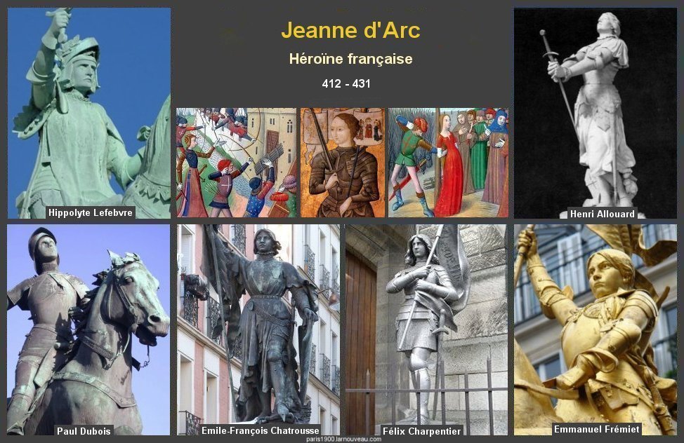 statue équestre d'Hippolyte Lefebvre (1863-1935) en façade du Sacré Cœur 8e arr. statue équestre d'Emmanuel Frémiet (1824-1910) sur la place des Pyramides 1e arr. statue équestre de Paul Dubois (1829-1905) sur place Saint Augustin 8e arr. statue en pied d'Emile-François Chatrousse (1829-1896) sur le boulevard St Marcel 13e arr.