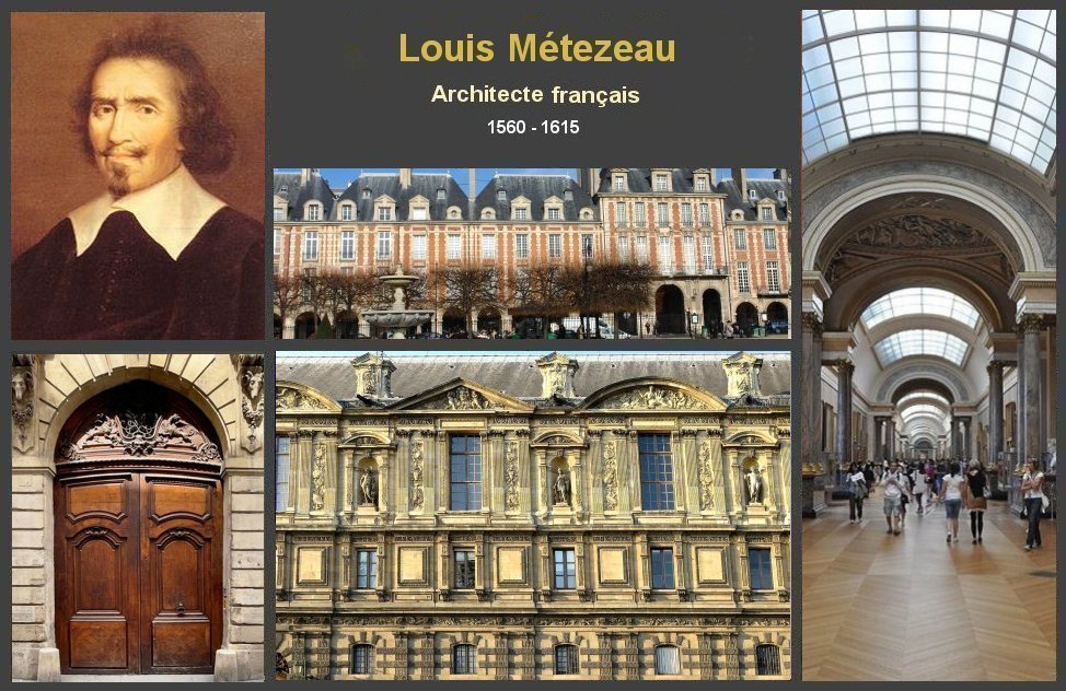 Brève biographie Louis Métezeau, architecte français, est en 1560 à Dreux (Eure-et-Loir) Issu d'une famille d'architectes, Il est le petit-fils de Clément Métezeau, fils de Thibault Métezeau, frère de Clément II Métezeau et neveu de Jean MétezeauJean de Fourcy, intendant des bâtiments du roi, le nomme architecte des bâtiments du roi en 1594 Louis Métezeau est décédé en 1615 à Paris
