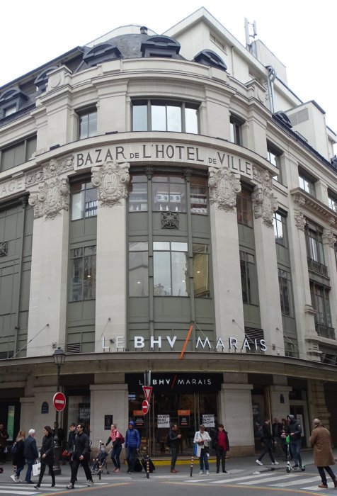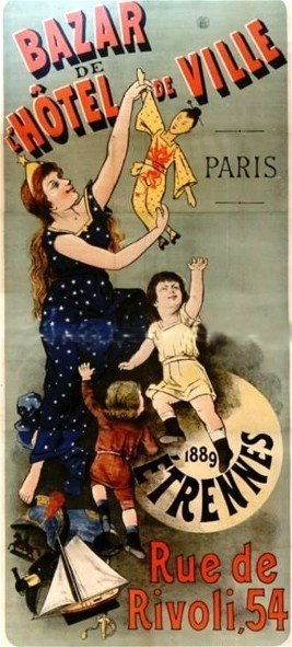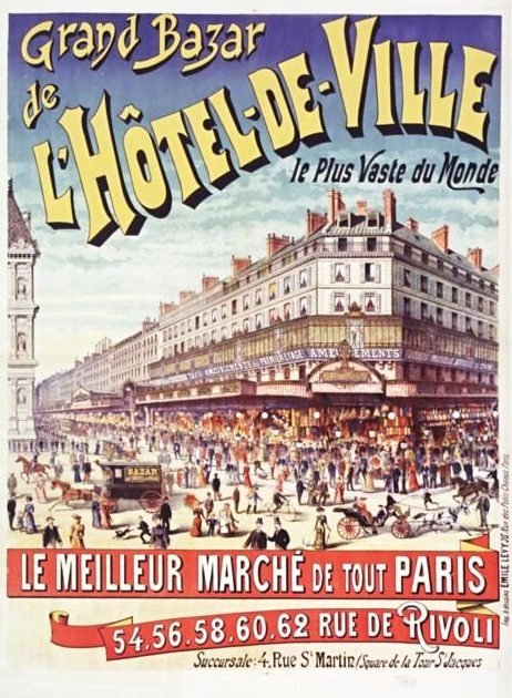 Ancien bazar Napoléon devenu Bazar de l'Hôtel de Ville en 1870 situé en face de l'Hôtel de Ville de Paris le long de la rue de Rivoli . Il a été crée par Xavier Ruel, arrivé de Lyon, il commença par faire vendre quelques articles de bonneterie, par des camelots, dans de vastes parapluies et ait construire en 1856 son magasin à cet endroit. En 1866, il prend en bail la plus grande partie de l’immeuble du 54 rue de Rivoli. Trois étages sont alors consacrés à la vente.