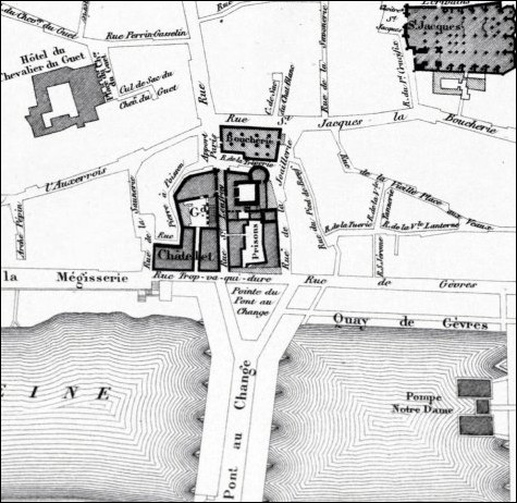 Le Grand Châtelet a été élevée, en 1130 par Louis VI le Gros. Le roi était hanté par les invasions vikings, au débouché du grand pont (devenu le pont au Change). menant à l'île de la Cité. Cette forteresse carrée était entourée d'une douve alimentée par les eaux de la Seine. Le Grand Châtelet abritait le siège de la police, des cachots ainsi que la première morgue de la capitale. Le Grand Châtelet a commencé à être démoli sous Napoléon en 1802, ce n’est qu’en 1858 que sera crée la place du Châtelet. Louis VI aménagea le Petit Châtelet situé sur la rive Droite.