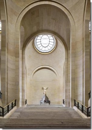 La pyramide est a été conçue par l'architecte sino américain Leoh Ming Pei, elle a été achevée en 1989. La statue équestre de Louis XIV due à Le Bernin ( 1598-1680 ) est une copie de l'original qui se trouve dans l’orangerie de Versailles. La cour Puget (1620-1694) et la cour Marly regroupe des sculptures de plein-air. Suite au départ du ministère des Finances en 1989 pour le quartier de Bercy. Les architectes Pei et Macary réaménagent ces lieux qui est inaugurée en 1993, elles présentent un éclairage naturel grâce à une verrière conçue par Peter Rice. Le Louvre est bordé au nord par la rue de Rivoli et au sud par la Seine et s'ouvre vers le jardin du carrousel et le jardin des Tuileries Le Palais des Tuileries qui fermait le Louvre sur son côté Ouest fut incendié pendant la Commune en 1871, et ses ruines furent rasées en 1880, ce qui a ouvert une perspective vers la place de la Concorde, l'avenue des Champs Elysées , l'Arc de Triomphe , l'avenue de la Grande Armée et la Grande Arche de la Défense.