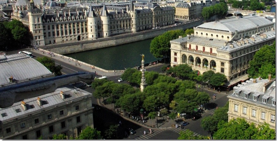 La place du Châtelet est sur l’emplacement de l’ancien Grand Châtelet château fort, construit en bordure de la Seine par Louis VI le Gros, plus tard devenu ma maison de justice du prévôt de Paris. Napoléon 1er fera raser le Grand Châtelet en 1802.