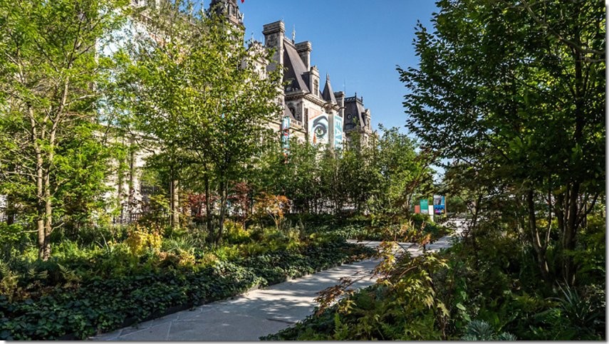 Une forêt urbaine a été inaugurée le 21 juin 2025 sur la place de l’Hôtel de Ville. Sur 2 500 mètres carrés de surface, dont 1 000 mètres carrés en pleine terre, le parvis accueille 50 arbres de grande taille accompagnés de plus de 20 000 plantes, incluant des arbustes et des fougères. Les fontaines ont été préservées
