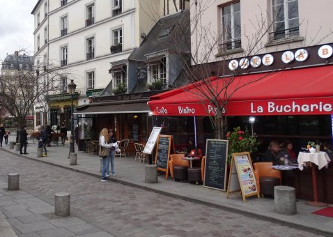 La rue de la Bûcherie est située près du quai de Montebello. Elle était bordée par l'annexe de l'Hôtel-Dieu qui sera détruit en 1908 donnant ainsi un accès direct à la Seine. Ce qui a permis également de créer notamment le square René Viviani qui a scindé la rue en deux parties. L'hôtel Colbert qui est situé à l'angle de la rue de l'Hôtel-Colbert et la rue de la Bûcherie a été inscrite aux monuments historiques par un arrêté du 19 octobre 1957.