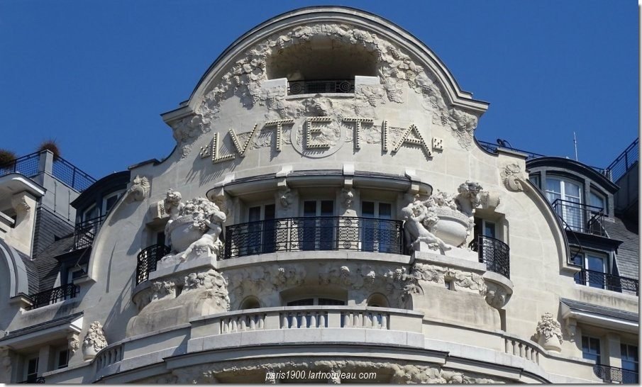 Situé à l'angle du boulevard Raspail et de la rue de Sèvres l'hôtel Lutétia inauguré en 1910, comprend 200 chambres il a été construit sur les plans des architectes Louis Boileau Fils et Henri Tauzin. La sculpture déployée en façade, sur le thème de la vigne, est l'œuvre de Léon Binet.