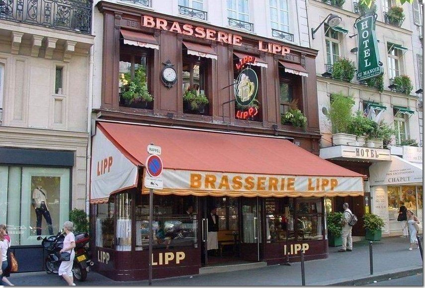 La Brasserie Lipp: 151, boulevard Saint Germain En 1880, Léonard Lipp et sa femme, d'origine alsacienne, ouvrent à cette adresse la Brasserie des Bords du Rhin, en 1920, quand Marcellin Cazes devient propriétaire et Lipp connaît alors une véritable notoriété. La décoration intérieure a été réalisée: en 1900 par le céramiste Léon Fargue, qui signe huit faïences de la première salle; en 1925, Madeline aménage une seconde salle dans la cour. Celle-ci est décorée de mosaïques (des copies des panneaux de céramique de Fargue) et de glaces légèrement inclinées. Des scènes africaines sont peintes par C. Garry sur les plafonds des deux salles. La brasserie est inscrite à l'Inventaire des Monuments historiques en 1989.