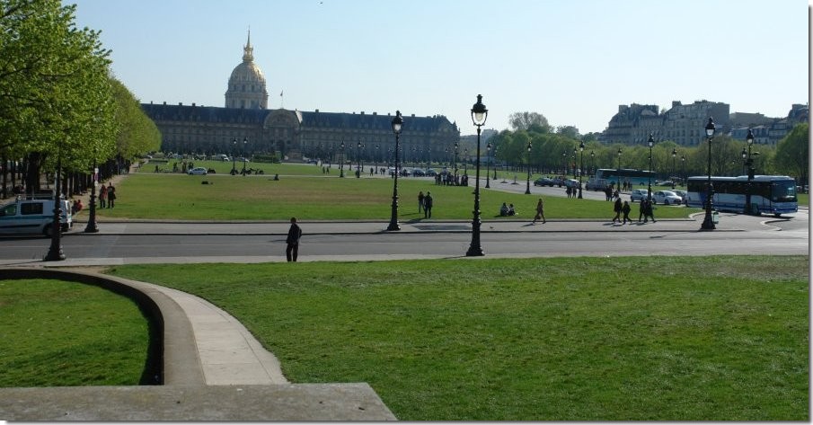 L'esplanade des Invalides d'une superficie de 32 800 m², longue de 500 mètres, s'étend du bâtiment principal de l'Hôtel des Invalides jusqu’à la Seine. L'État céda le terrain qui servait de champ de manœuvre à la Ville de Paris, en 1863. Elle sera construite de 1704 à 1720, elle n'était auparavant qu'un vaste pré, qui s'ouvrait autour l'hôtel des Invalides.