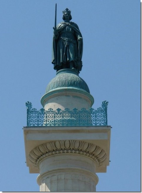 En 1845, les colonnes furent surmontées de deux statues de 3,8 mètres de hauteur : Philippe Auguste sculpté par Augustin Dumont (1801-1884) au sud et Saint Louis par Antoine Étex (1808-1888) au nord . Ainsi que des bas-reliefs : L'Abondance (1843) et La Justice (1843) de Pierre-Charles Simart (1806-1857) et La Victoire (1843) et La Paix (1843) d'Antoine Desboeufs (1793-1862)