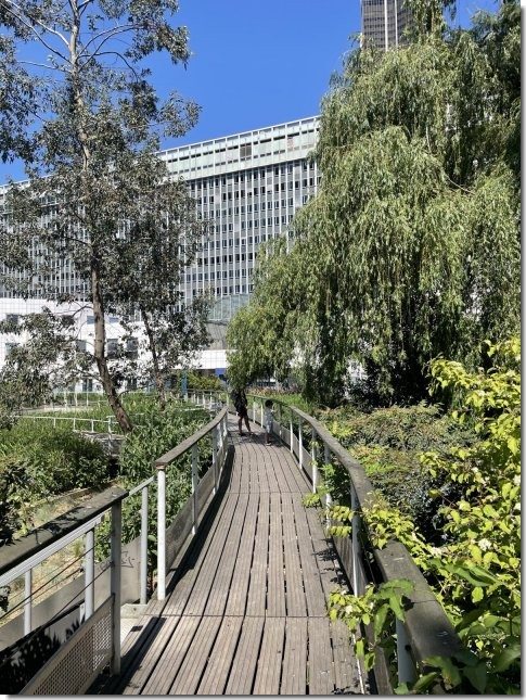 Le Jardin Atlantique a été conçu, en 1994 par François Brun et Michel Péna paysagistes, au-dessus des voies de la gare Montparnasse sur une surface de 3,50 hectares, il est entouré par des barres d'immeubles de bureaux et d’habitations. Une grande pelouse carrée libre d'accès constitue le centre du parc.