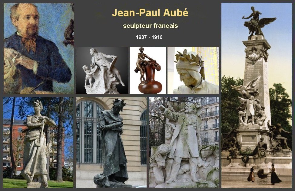 Brève biographie Jean-Paul Aubé, sculpteur français, est né le 3 juillet 1837 à Paris Il fait ses études à l'École des beaux-arts de Paris dans les ateliers d'Antoine Laurent Dantan et de Francisque Duret. Il réalise un voyage en Italie en 1866 qui développe chez lui une influence du style néo-renaissance puis néo-baroque. Jean-Paul Aubé réalise des monuments, des bustes et des médailles. Il devient professeur à l'École des beaux-arts de Paris. Jean-Paul Aubé est décédé à Paris le 23 août 1916