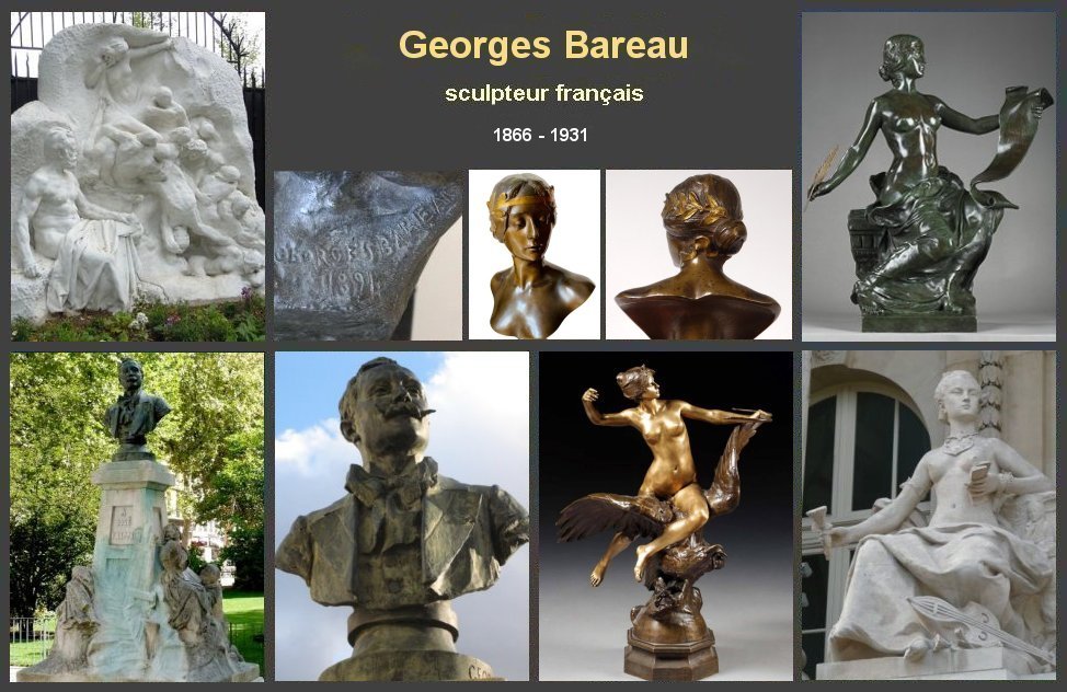 Brève biographie Georges Bareau, sculpteur français, est né le11 avril 1866 à Paimbœuf (Loire Atlantique) Il entre à l'École des beaux-arts de Paris où est l'élève de Charles Gauthier et de Gabriel-Jules Thomas. Il expose au Salon à partir de 1889. On lui octroie le prix du Salon en 1895, il est classé hors-concours à l’issue de l’Exposition universelle de Bruxelles de 1897. Une médaille d’or à l’Exposition universelle de 1900 à Paris couronne sa carrière. Il est promu au grade d’officier de la Légion d'honneur en décembre 1906. Bareau réalise de nombreuses petites statues en bronze A son décès toutes ses œuvres sont léguées à la ville de Saint-Nazaire. Georges Bareau est décédé le 4 janvier 1931 à Nantes (Loire Atlantique)