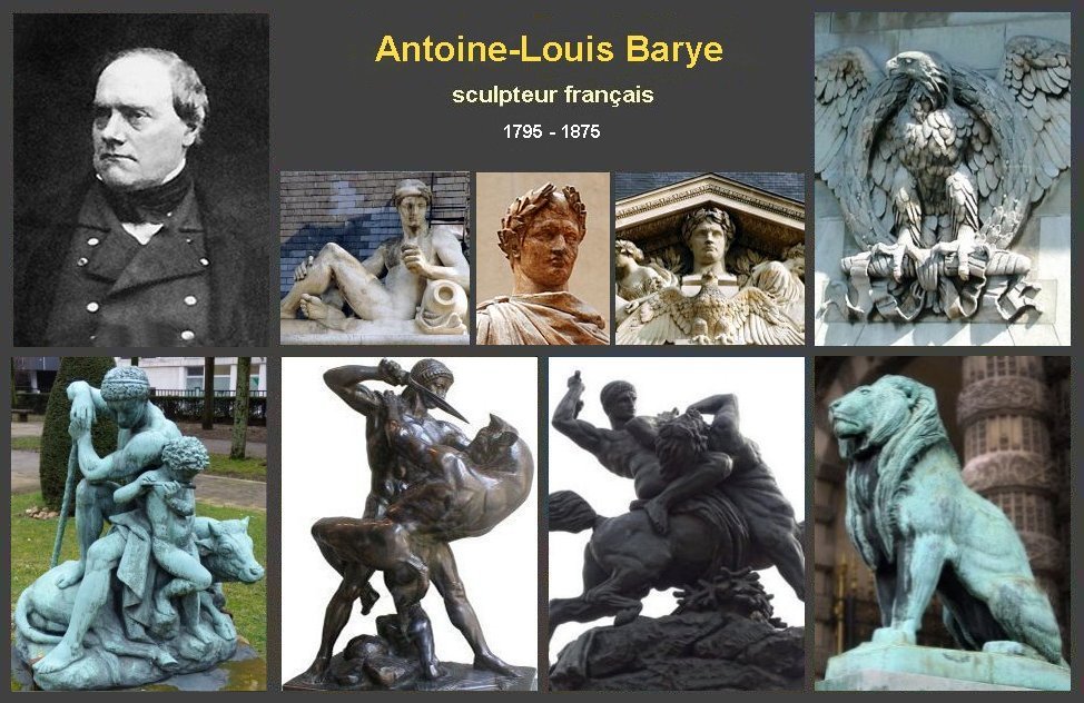 Brève biographie Antoine-Louis Barye, sculpteur français, est né le 24 septembre 1795 à Paris. Fils d'un ciseleur d'origine lyonnaise, il entre en apprentissage chez un graveur pour orfèvres, Fourier. Il entre à l’École des Beaux-arts de Paris en 1818, où il est l'élève de François Joseph Bosio Il obtient en 1820, le second prix de Rome de sculpture ave "Caïn maudit par Dieu". Barye fait partie des sculpteurs, qui avec d'autres comme Pierre Louis Rouillard ou Henri-Alfred Jacquemart ont profité, durant la seconde moitié du XIXe Antoine-Louis Barye, décédé à Paris le 25 juin 1875, est inhumé à Paris au cimetière du Père-Lachaise.