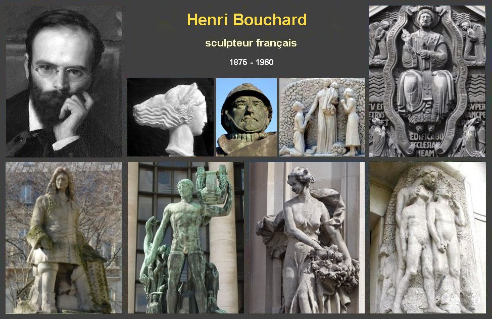 Brève biographie Henri Bouchard sculpteur français est né le 13 décembre 1875 à Dijon (Côte d'Or) En 1889, il suit dans le même temps, les cours de l'Ecole des beaux-arts de Dijon Il s'inscrit à l'Académie Julian à Paris et entre à l'École nationale supérieure des arts décoratifs, où il est l'élève d'Hector Lemaire de 1889 à 1894. Il entre ensuite à l'École des beaux-arts de Paris dans l'atelier du sculpteur Louis-Ernest Barrias de 1895 à 1901. Bouchard remporte le grand prix de Rome sur le thème de l’Exil d'Œdipe et d'Antigone chassés de Thèbes en 1901 Il est pensionnaire à la villa Médicis à Rome de 1902 à 1906 Il développe son approche naturaliste du monde des travailleurs, son art devient plus stylisé, rythmé et plus décoratif. Il se fait construire en 1924 un atelier à Paris dans le quartier d'Auteuil, qui deviendra le musée Henri Bouchard, fermé en mars 2007, il sera transféré à Roubaix. Il participe à l'Exposition internationale des Arts décoratifs et industriels modernes de 1925. De 1928 à 1929, il est professeur à l'École nationale supérieure des arts décoratifs, puis de 1929 à 1945, il devient professeur et chef d'atelier à l'École des beaux-arts de Paris. En 1944, à la Libération, il est reconnu comme collaborateur par le comité directeur du Front national des arts réuni. Le Parquet classera ensuite le dossier après son étude. Henri Bouchard est décédé le 30 novembre 1960 à Paris