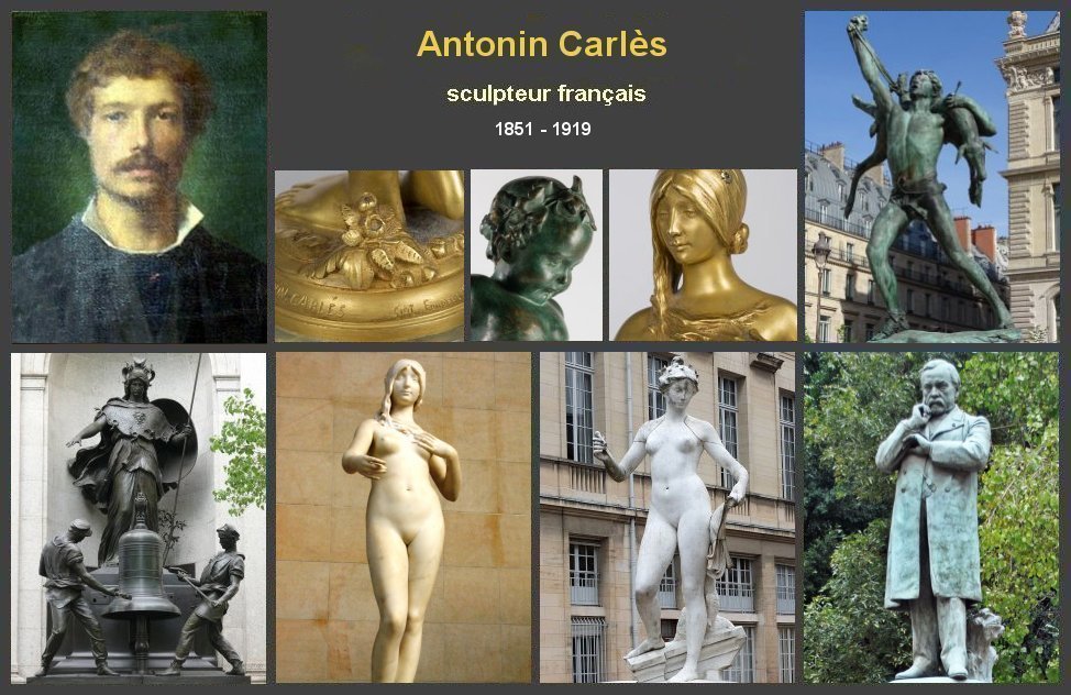 Brève biographie Jean-Paul Antonin Charles Carlès, sculpteur français, est né le 23 juillet 1851 à Gimont (Gers) Issu d’une famille modeste, il fréquente l’Ecole des Beaux-Arts de Marseille de 1864 à 1867, puis l’Ecole des Beaux-Arts de Marseille, où il reste jusqu’en 1867. De 1873 à 1875, il fréquente l'École des beaux-arts de Paris, où il deviendra l'élève de François Jouffroy et d’Ernest-Eugène Hiolle . En 1878, il participe pour la première fois au Salon Il obtient le grand prix de l’Exposition universelle de 1889. Il est nommé chevalier de la Légion d’honneur en 1900, puis promu commandeur en 1913. Antonin Carlès est décédé le 18 février 1919 à Paris
