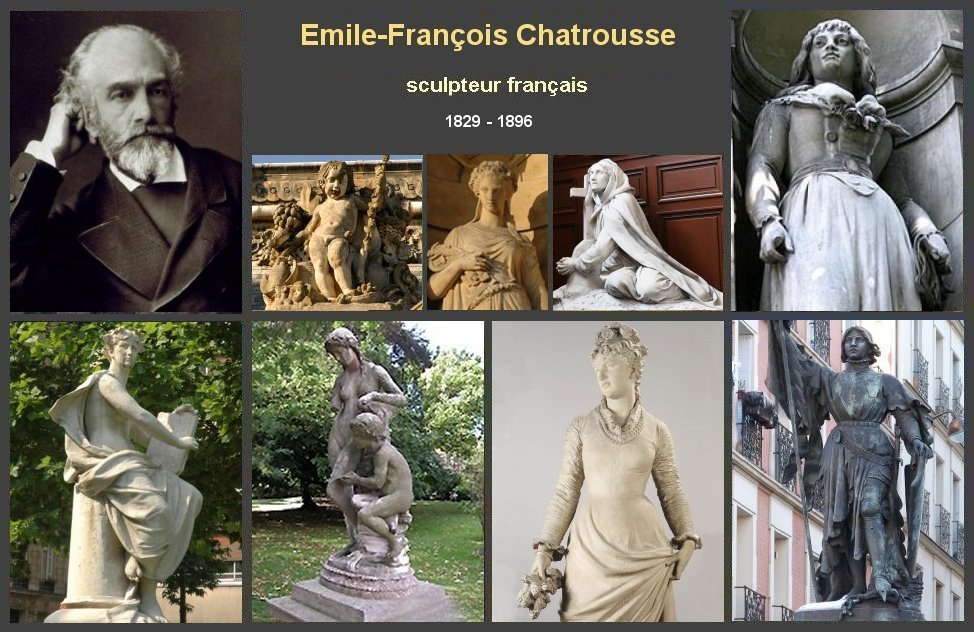 Brève biographie Emile-François Chatrousse sculpteur français est né le 6 mars 1829 à Paris Il commence à travailler chez un graveur ciseleur de bijoux. Il est ensuite l'élève du peintre Alexandre Abel de Pujol à l'École des beaux-arts de Paris En 1851, il entre dans l’atelier de François Rude. Chatrousse reçoit de nombreuses commandes publiques Il est promu chevalier de la Légion d’honneur, en 1878. Chatrousse est également un écrivain et un critique d’art reconnu. Emile-François Chatrousse est décédé le 14 décembre 1896 à Paris