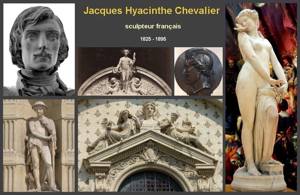 Brève biographie Jacques-Marie-Hyacinthe Chevalier, sculpteur français, est né le 7 avril 1825 à Saint-Bonnet-le-Château (Loire) Il devient l'élève d'Armand Toussaint et entre à l'École des Beaux-Arts en 1847. Il expose pour la première fois en 1852. Il réalise de nombreuses sculptures dont beaucoup lui sont commandées par l'État et par la Ville de Paris. Jacques Hyacinthe Chevalier est décédé en 1895 à Paris