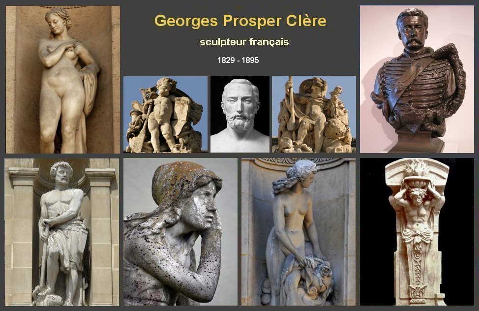 Brève biographie Georges Prosper Clère, sculpteur français, est né le 9 novembre 1829 à Nancy (Meurthe et Moselle) Il commence par étudier la médecine à Dijon, tout en suivant les cours de l’Ecole des Beaux-arts de cette ville. Par la suite, il se consacre à la sculpture et entre dans l’atelier de François Rude à l'école des beaux arts de Paris Georges Clère est décédé le 7 septembre 1895 à Paris