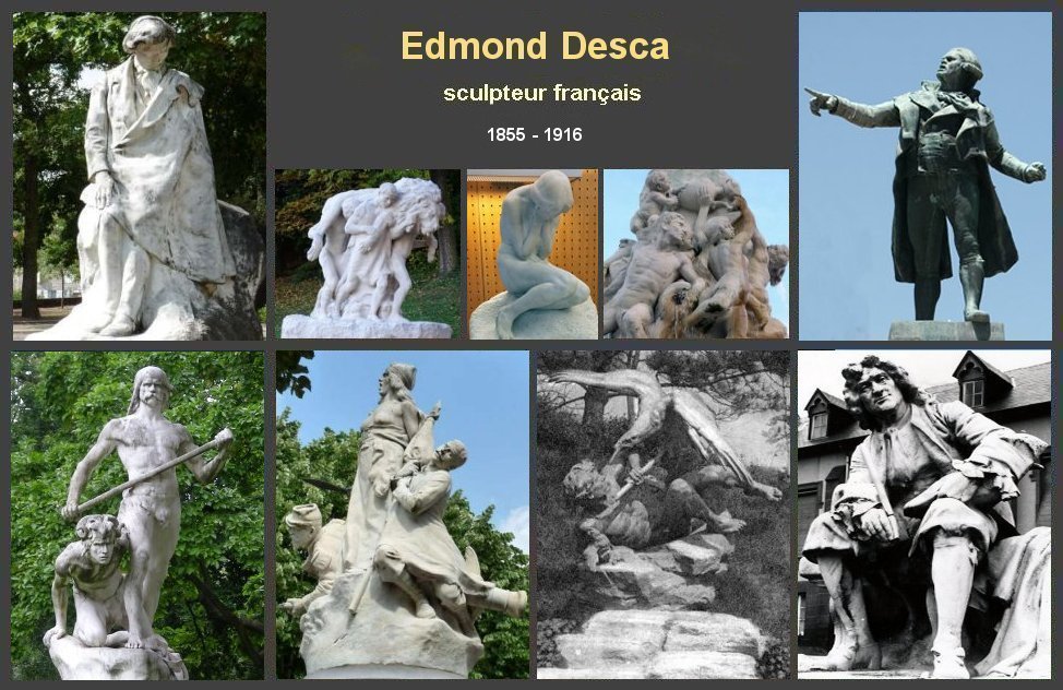 Brève biographie Edmond Desca sculpteur français est né le 16 novembre 1855 à à Vic-en-Bigorre (Hautes Pyrénées) Il est l'élève de François Jouffroy à l'École des beaux-arts de Paris. Il expose au Salon de 1879 à 1914. Edmond Desca est décédé le 22 juin 1918 à Paris