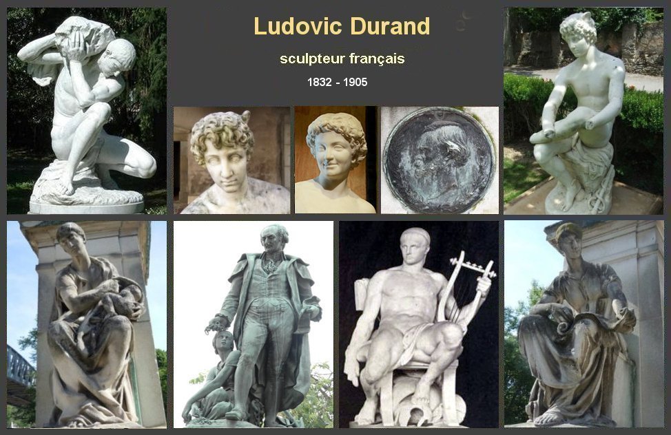 Brève biographie Ludovic-Eugène Durand sculpteur français est né le 11 février 1832 à Saint-Brieuc (Côtes-d'Armor) Il entre à l’Ecole des Beaux-arts en 1848 et suit l’enseignement de François Toussaint. Il obtient une médaille de deuxième classe en 1872 et une médaille de troisième classe en 1874 (Saint Brieuc), le monument à Méry (Paris), Mercure (Carcassonne), Histrio (Musée de Blois), Le Tacheron (Tarbes). Ludovic-Eugène Durand est décédé en 1905 à Courbevoie (Hauts-de-Seine)
