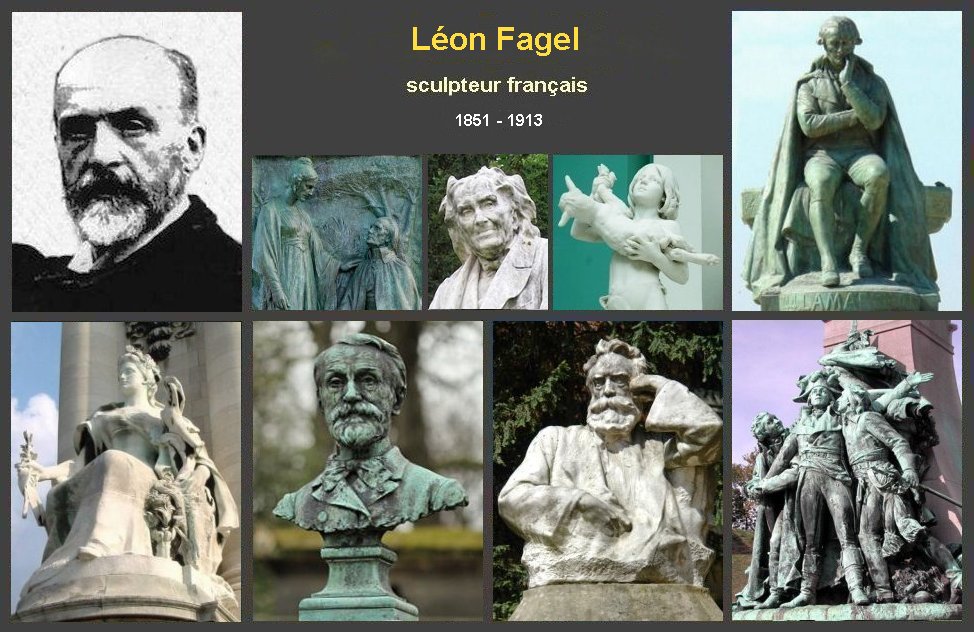 Brève biographie Léon Fagel sculpteur français est né le 19 janvier 1851 à Valenciennes (Nord-Pas-de-Calais) Il entre à l'École des Beaux-Arts de Paris en 1868 et est l'élève de Jules Cavelier Il obtient le Premier Grand Prix de Rome en 1879 avec le bas-relief en plâtre "Tobie rendant la vue à son père", puis devient pensionnaire de la villa Médicis à Rome de 1880 à 1883. Il est surtout connu pour ses bustes, mais aussi ses statues en pied, ses monuments et ses bas-reliefs, Il est fait Chevalier de la Légion d'honneur en 1893, puis Officier en 1903. Léon Fagel est décédé à Cousolre (Nord) le 20 mars 1913