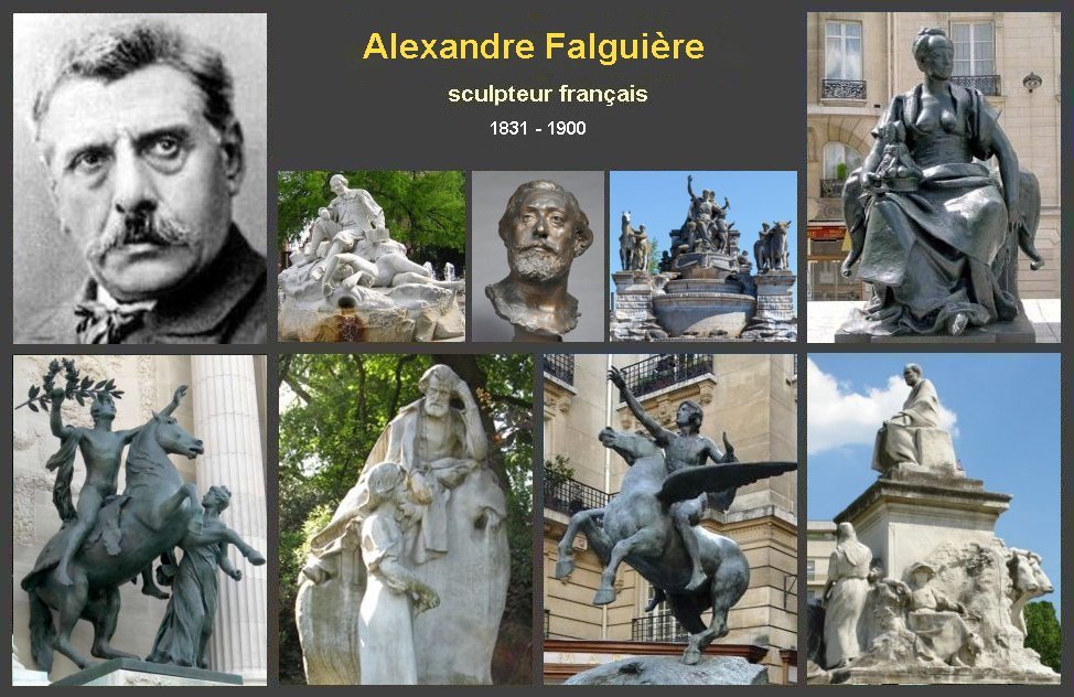Brève biographie Alexandre Falguière sculpteur français est né le 7 septembre 1831à Toulouse Elève de François Jouffroy il a obtenu le premier grand prix de Rome de sculpture en 1859 avec son bas-relief Mézence blessé. Nommé professeur à l'Ecole des Beaux Arts , il est élu membre de l'Académie des Beaux-Arts. Son plus célèbre élève est Antoine Bourdelle . Ses œuvres sont essentiellement consacrée à la sculpture mais il réalise aussi quelques tableaux. Alexandre Falguière est décédé à Paris le 19 avril 1900,