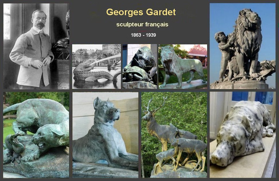 Brève biographie Georges Gardet sculpteur français est né le 11 octobre 1863 à Paris. Il est le fils du sculpteur Joseph Gardet et le frère du sculpteur Joseph-Antoine Gardet. Il suit les cours de l'École des beaux-arts de Paris dans les ateliers d'Aimé Millet et d'Emmanuel Frémiet. Il est membre de l'Académie des beaux-arts et de la Société des artistes français. Il est considéré comme l'un des plus grands artistes de l'école française des sculpteurs animaliers. Il reçoit des commandes de clients pour des "portraits" de leurs animaux familiers ou pour décorer leur jardin ou leur demeure. Georges Gardet est décédé en 1939 à Paris