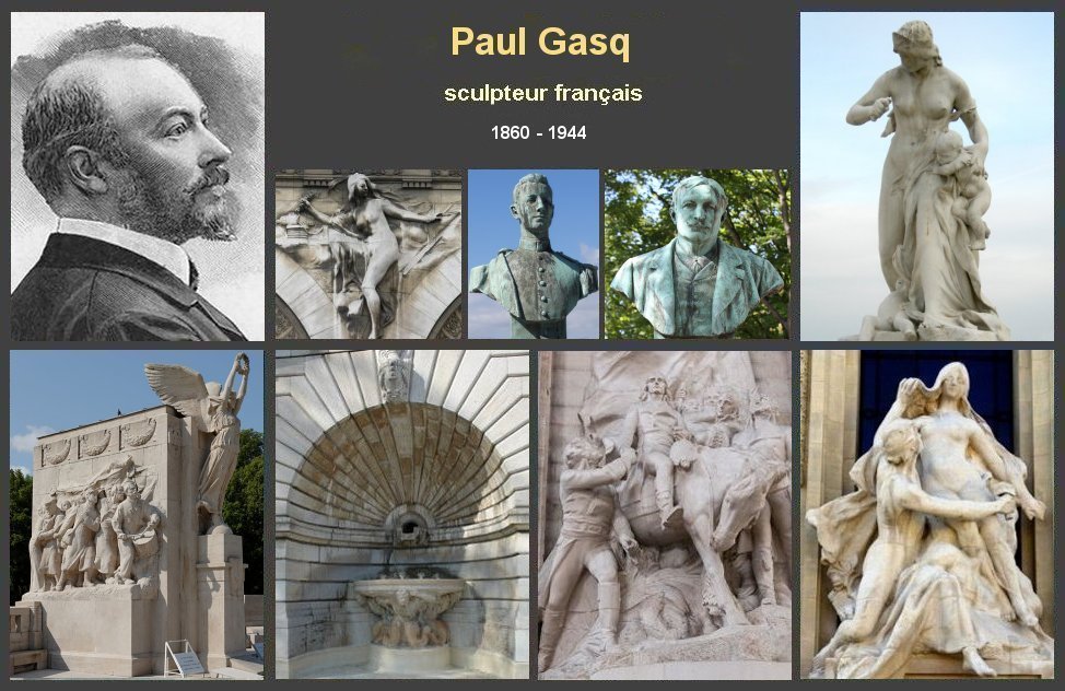 Brève biographie Paul Jean-Baptiste Gasq sculpteur français est né le 30 mars 1860 à Dijon (Côte d'Or) Il est élève à l'école des beaux-arts de Dijon Puis, à partir de 1879, à l'École nationale supérieure des beaux-arts de Paris. Lauréat du premier prix de Rome de sculpture en 1890, il devient pensionnaire de la villa Médicis à Rome de 1891 à 1894. Il réalise de nombreux bustes, médaillons et statuettes ainsi que des sujets classiques ou allégoriques. Il est élu membre de l'Académie des beaux-arts à partir de 1935 il devient conservateur du musée des beaux-arts de Dijon de 1932 jusqu’en 1943. Paul Jean-Baptiste Gasq est décédé le 28 octobre 1944 à Paris