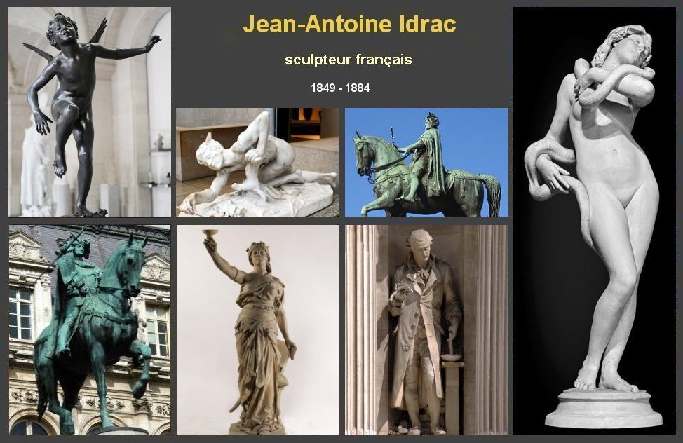 Brève biographie Jean-Antoine-Marie Idrac, sculpteur français, est né le 14 avril 1849 à Toulouse (Haute Garonne) Il entre à l’Ecole des Beaux-arts, en 1866 où il est l'élève d'Alexandre Falguière et de Jules Cavelier Idrac remporte en 1873 le premier grand prix de Rome de sculpture Il débute au Salon de 1877 Il est décoré de la Légion d’Honneur en 1882. Jean-Antoine-Marie Idrac décède, à l'âge de 35 ans, d'une fièvre typhoïde le 28 décembre 1884 à Paris
