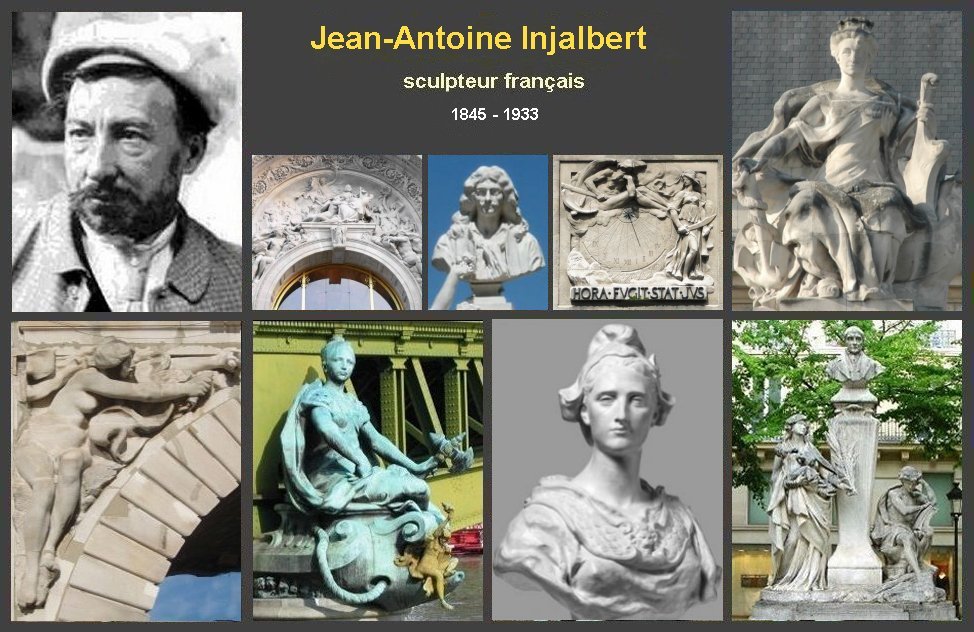 Brève biographie Jean-Antoine Injalbert sculpteur français est né e 23 février 1845 à Béziers (Hérault) Il entre à l'École des beaux-arts où il est élève d'Auguste Dumont. Prix de Rome en 1874 pour la Douleur d'Orphée Il obtient un Grand Prix de l'Exposition Universelle de 1889. Il devient membre de l'Académie des Beaux-Arts de l'Institut de France en 1905. Beaucoup de ses œuvres se trouvent au musée Fayet à Béziers et à la Villa Antonine Jean-Antoine Injalbert est décédé à Paris le 20 janvier 1933