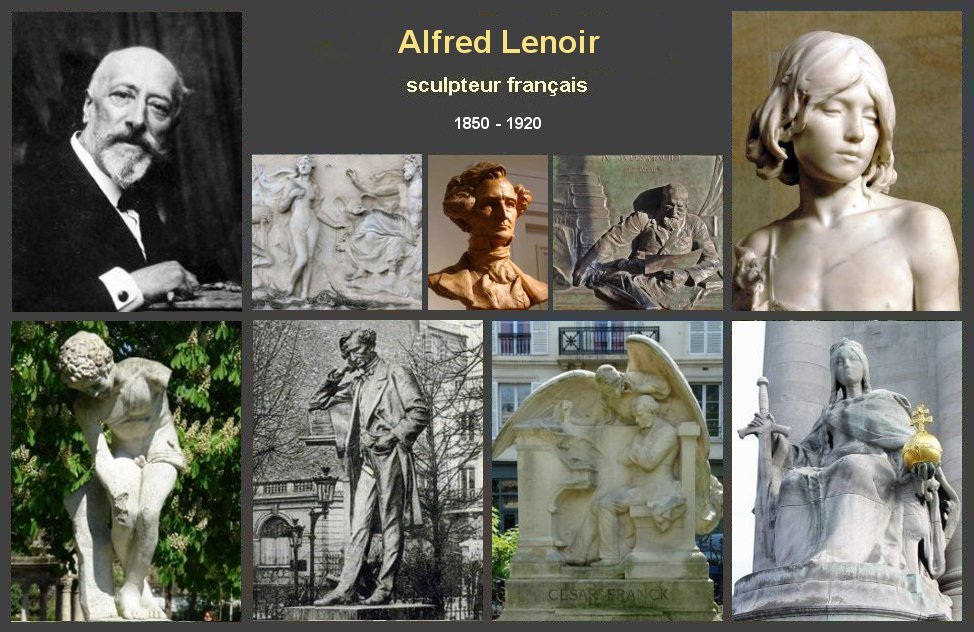 Brève biographie Charles Alfred Lenoir, sculpteur français, est né le 12 mai 1850 à Paris Il est le fils de l'architecte et archéologue Albert Lenoir (1801-1891), fondateur du musée de Cluny. Alfred Lenoir fréquente l'École impériale et spéciale des beaux-arts de Paris, dont il sort diplômé en 1869 Il y est l'élève de Jules Cavelier et d'Eugène Guillaume, dont il se démarque finement. Il obtint le second prix de Rome et passe huit mois en Italie. On lui décerne des médailles d'or à l'Exposition universelle de 1889 et à celle de 1900 à Paris. Alfred Lenoir, décédé Paris, est inhumé au cimetière du Montparnasse le 27 juillet 1920