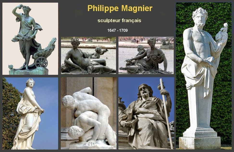 Brève biographie Philippe Magnier, sculpteur français, est né le en 1647 C'est le fils du sculpteur Laurent Magnier. Il a travaillé presque toute sa vie à Versailles, aussi bien pour les décorations intérieures qu’extérieures. IL est nommé adjoint à professeur en 1662 puis professeur en 1704. Philippe Magnier est décédé le 25 décembre 1715 à Paris