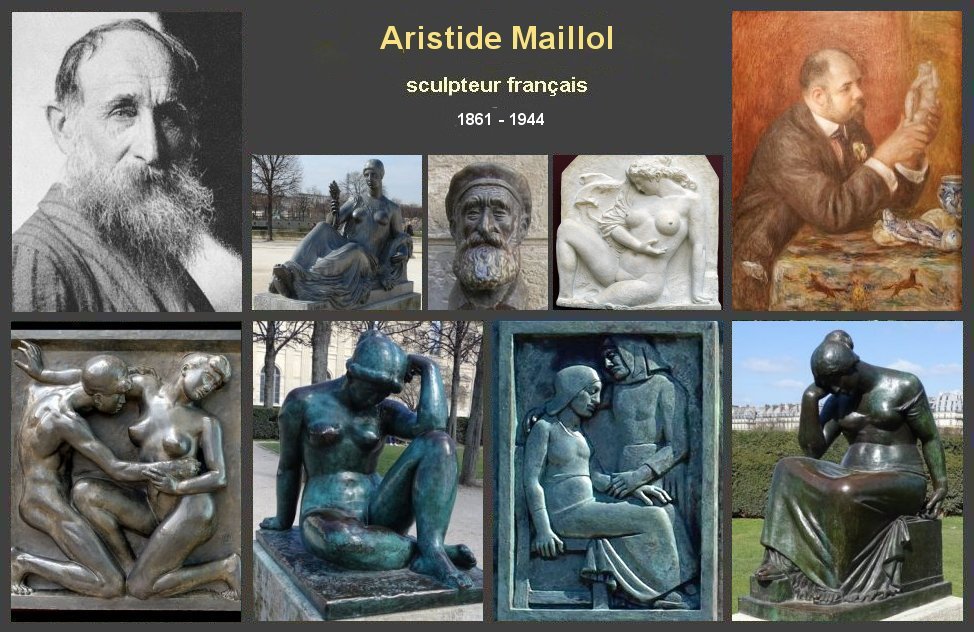 Brève biographie Aristide Bonaventure Jean Maillol sculpteur français est né le 8 décembre 1861 à Banyuls-sur-Mer (Pyrénées-Orientales) Il reçoit une bourse qui lui permet d'étudier à l'École des Beaux-Arts de Paris chez Gérone et Cabanel Maillol s'adonne à la peinture, à la tapisserie et à la céramique mais se consacre ensuite exclusivement à la sculpture vers l'âge de 40 ans Un voyage en Italie et en Grèce où il tombe en admiration devant les sculptures de l'Antiquité incite Maillol à devenir sculpteur. En 1889, il se lie d'amitié avec le sculpteur Antoine Bourdelle. Auguste Rodin lui adresse des commanditaires. Maillol a été influencé par les civilisations antiques (la Grèce, l'Égypte, l'Inde). Son répertoire se limita presque entièrement au corps féminin dans un style privilégiant les corps sensuels et épanouis, les volumes lisses et arrondis. Aristide Maillol opère, après Auguste Rodin, une révolution dans la sculpture en épurant les formes et en simplifiant le modelé, mais sans s'engager dans les courants avant-gardistes comme les cubistes. Un Musée Maillol ouvre ses portes en 1995 à Paris 7e arr. Aristide Bonaventure Jean Maillol est décédé le 27 septembre 1944 à Banyuls-sur-Mer (Pyrénées-Orientales)