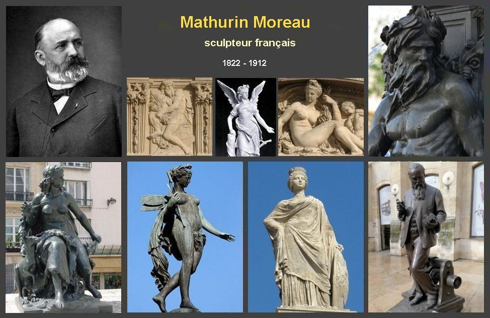Brève biographie Mathurin Moreau sculpteur français est né le 18 novembre 1822 à Dijon (Côte d'Or) Il est le fils du sculpteur Jean-Baptiste Moreau Il entre à l'Ecole des Beaux-Arts de Paris en 1841, où il est l'élève de Jules Ramey et d'Augustin Dumont Admis à l’École des beaux-arts de Paris en 1841, il remporte le second prix de Rome en 1842 avec Diodème enlevant le Palladium. Il obtient une médaille de seconde classe à l’Exposition universelle de 1855 à Paris, puis une médaille de première classe à celle de 1878. Elu maire du 19e arrondissement de Paris en 1879, ile le reste jusqu'au son décès en 1912 une avenue de porte son nom depuis cette dernière année. Mathurin Moreau est décédé à Paris le 14 février 1912