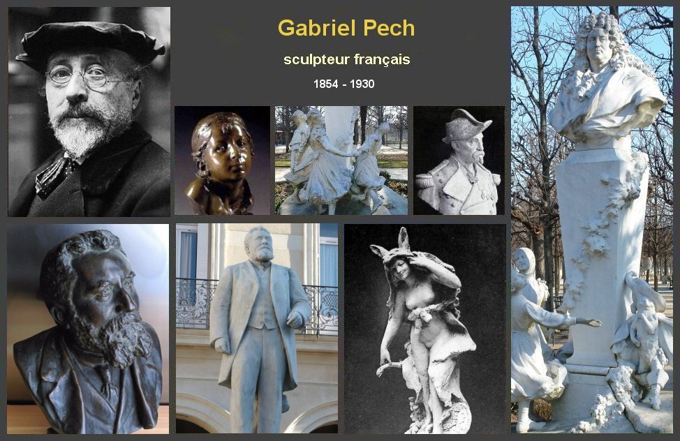 Brève biographie Gabriel Édouard Baptiste Pech, sculpteur français, est né le 21 mai 1854 à Albi (Tarn) Fils d'un imprimeur issu d'une famille de lithographes, il apprend la sculpture à l'école des Beaux-Arts de Toulouse Gabriel Pech est l'élève à l'École des beaux-arts de Paris dans les ateliers de François Jouffroy, Alexandre Falguière et Antonin Mercié Il réalise de nombreux portraits de contemporains, hommes politiques, militaires, etc... Une grande amitié le lie à Jean Jaurès dont il devient l'un des "sculpteurs attitrés". Gabriel Pech est décédé en 1930 à Saint-Loup-Cammas (Haute Garonne)