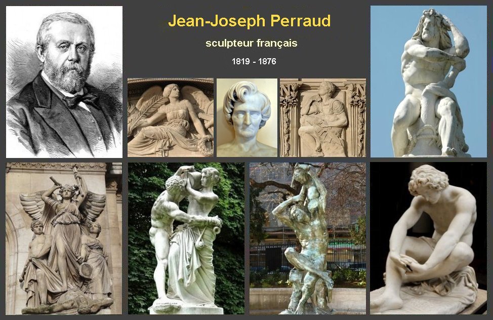 Brève biographie Jean-Joseph Perraud sculpteur français est né le 26 avril 1819 à Monay (Jura) Il va en apprentissage en 1834, chez le père Duvernoy, ébéniste, puis à Pontarlier. Élève à l'École des beaux-arts de Paris dans les ateliers de Jules Ramey et d'Auguste Dumont Il obtient le grand prix de Rome en 1847 pour "Télémaque apportant à Phalante l'urne renfermant les cendres d'Hippias" puis devient alors pensionnaire de la Villa Médicis à Rome. Il devient membre de l'Institut en 1865, ce qui lui assure des commandes officielles jusqu'à la fin de sa vie. Sculpteur académique, néo-classique, teinté de romantisme. Jean-Joseph Perraud est décédé à Paris le 2 novembre 1876
