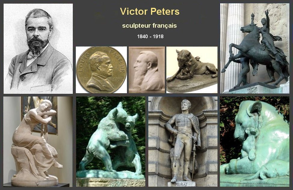 Brève biographie Victor Peters sculpteur français est né le 20 décembre 1840 à Paris Il suit l’enseignement de François Devaulx et d’Alexandre Falguière. Il travaille comme praticien pour Jules Dalou, Antonin Mercié et Auguste Rodin. Il est nommé professeur à l'École des beaux-arts en 1901 Il remporte une médaille de bronze à l’Exposition universelle de 1889 et une médaille d’or à l’Exposition universelle de 1900. Il excelle dans la représentation naturaliste d'animaux en petits bas-reliefs, et puise son inspiration des Fables de La Fontaine. Peters est l'auteur d'une série de portraits en médaillons d'artistes contemporains Victor Peters est décédé le 29 mars 1918 à Paris