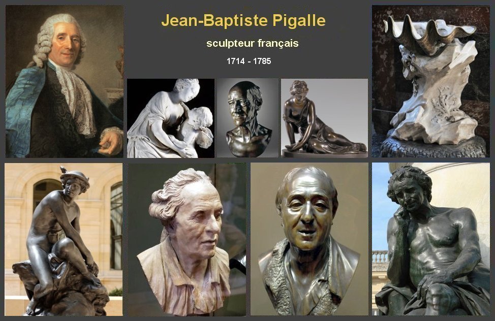 Brève biographie Jean-Baptiste Pigalle, sculpteur français, est né le 26 janvier 1714 à Rueil-Malmaison (Hauts-de-Seine) Il apprend la sculpture auprès de Robert Le Lorrain puis de Jean-Baptiste Lemoyne. Il se rend en Italie en 1734 dans le but d'apprendre de nouvelles techniques. Grâce au soutien financier de Guillaume II Coustou, alors pensionnaire à l’Académie de France, il peut y rester jusqu'en 1739 Pigalle entre à l'École des Beaux-Arts et devient académicien en 1744 Considéré comme un maître par ses contemporains, son œuvre est à la charnière des courants baroque et néo-classique. Sa renommée est telle qu'il reçoit ensuite des commandes des plus hauts personnages. Jean-Baptiste Pigalle est décédé à Paris le 22 août 1785 à Paris