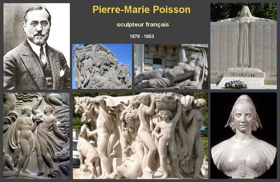 Brève biographie Pierre-Marie Poisson, sculpteur français, est né le 19 novembre 1876 à Niort (Deux Sèvres) Il étudie la sculpture à l'École des beaux-arts de Toulouse de 1893 à 1896, où il se forme aux arts plastiques et au travail du plâtre. Il complète cet enseignement dans l'atelier de Ernest Barrias à Paris. En 1907, il obtient une médaille d'honneur au Salon des Artistes Français Il est fait chevalier de la Légion d'honneur en 1923. Pierre-Marie Poisson est décédé le 11 janvier 1953 à Paris