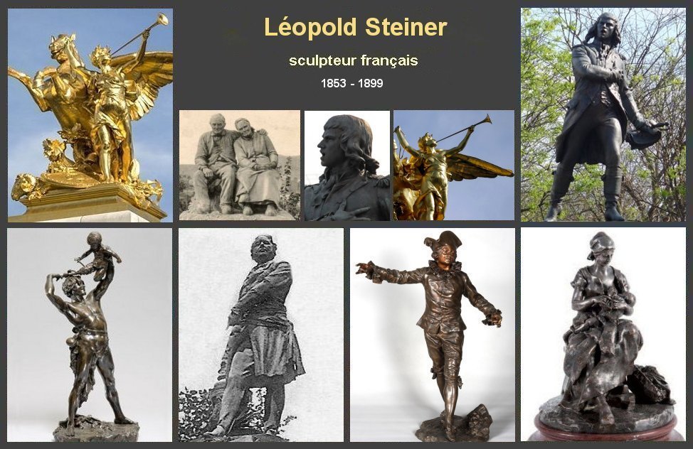 Brève biographie Léopold Clément Steiner sculpteur français est né le 7 mars 1853 octobre 1867 à Paris. Fils de sculpteur, il entre à l’Ecole des Beaux-arts et suit l’enseignement de François Jouffroy et d'Aimé Millet. Il reçoit une médaille d'or à l'Exposition universelle de 1889 pour l'ensemble de son œuvre. Participe à la décoration de l'hôtel particulier du prince Roland Bonaparte, avenue d'Iéna à Paris et à celle du château de Franconville. Léopold Clément Steiner est décédé à Bois-le-Roi (Seine-et-Marne) en décembre 1899
