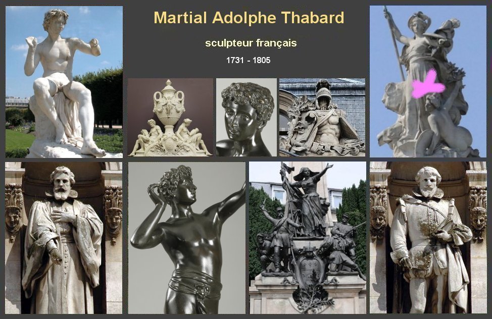 Brève biographie Martial Adolphe Thabard, sculpteur français, est né le 13 novembre 1831 à Limoges (haute Vienne) Issu d’une vieille famille d’artisans porcelainiers, c'est en 1845 qu'il reçoit ses premières leçons de modelage.