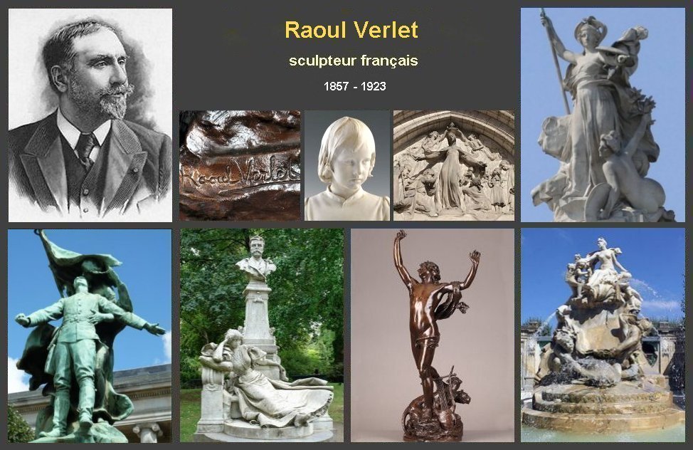 Brève biographie Raoul Verlet sculpteur français est né le 7 septembre 1857 à Angoulême (Charente) Fils du concierge du cimetière d'Angoulême. Il étudie d'abord la sculpture à Bordeaux, puis est admis à l'École des beaux-arts de Paris où il suit pendant les cours dispensé par Jules Cavelier et Louis-Ernest Barrias. Second grand prix de Rome et prix du Salon de 1887 pour la Douleur d'Orphée Il reçoit de nombreuses commandes de statues et monuments à Paris, Rouen, Marseille, Cognac, Louviers. Dans le même temps, il exécute un grand nombre de bustes de particuliers. À partir de 1905, il enseigne à l’École nationale supérieure des beaux-arts et il est reçu membre de l’Institut en 1910, en remplacement d'Emmanuel Frémiet. Raoul Verlet est décédé le 1 décembre 1923 à Cannes (Alpes-Maritimes)