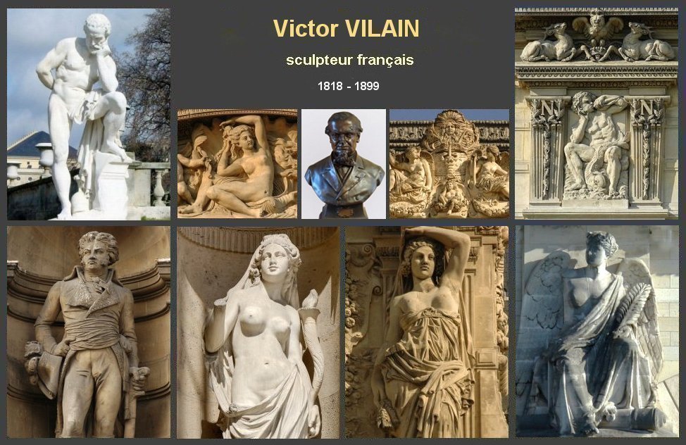 Brève biographie Victor Vilain, sculpteur français, est né le 3 août 1818 à Paris Il entre en 1834 à l'École des beaux-arts de Paris, où il est l’élève de James Pradier et de Paul Delaroche. Il remporte le Prix de Rome en 1838, après avoir obtenu l’année précédente, le deuxième grand prix. Ses expositions régulières au Salon des artistes français lui valent de nombreuses commandes publiques de la ville de Paris ou de particuliers. Vilain est nommé chevalier de la Légion d'honneur en novembre 1849. Il travaille pour plusieurs églises de Paris. Il réalise de nombreux portraits et bustes Victor Vilain est décédé le 6 mars 1899 à Paris