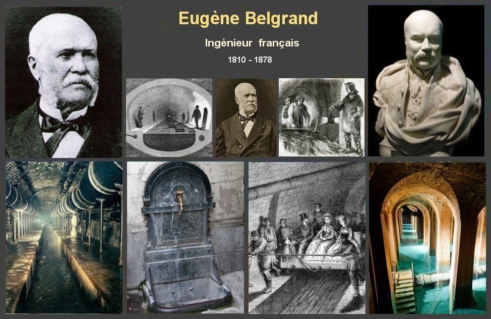 Brève biographie Eugène Belgrand ingénieur français est né le 23 avril 1810 à Ervy-le-Châtel (Aube) Il entre à l’École polytechnique en 1829, puis aux Ponts et Chaussées en 1831. Nommé ingénieur au service de l’Yonne à Avallon en 1845, il élabore sa théorie sur l’hydraulique des masses souterraines. Le Baron Haussmann fait appel à lui pour conduire les grands travaux du réseau d’eau et d’assainissement de la capitale. Entre 1852 et 1870 il participe à la rénovation de Paris, en compagnie de son confrère Jean-Charles Alphand et du jardinier Jean-Pierre Barillet-Deschamps. Afin de supprimer tout rejet d’eaux usées en Seine dans Paris intra-muros, Belgrand conçoit un réseau d’égouts qui permet leur évacuation en aval à hauteur de Clichy. Le réservoir de Montsouris est construit de 1868 à 1873 afin d’alimenter en eau de toute la partie sud de la ville On lui doit les égouts de Paris, l'aqueduc de la Vanne entre les communes d'Arcueil et de Cachan, celui de la Dhuis, ainsi que le réservoir de Montsouris qui en stocke les eaux. Eugène Belgrand, décédé le 8 avril 1878, est inhumé au cimetière du Montparnasse
