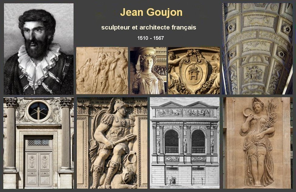 Brève biographie Jean Goujon architecte français est né vers 1510 en Normandie Il a commencé sa carrière à Rouen par des commandes d’ordre religieux. Jean Goujon est l'un des premiers artistes dont l'œuvre s'inspire directement de l'art antique et de la Renaissance italienne qu'il a étudiés personnellement en Italie Il arrivé à Paris vers 1542 Architecte et sculpteur, Jean Goujon sut soumettre son œuvre sculpturale, surtout des bas-reliefs, au cadre architectural dans lequel elle devait s'inscrire. il est un des principaux promoteurs de la Renaissance classique et maniériste en France Jean Goujon collabore étroitement avec l'architecte Pierre Lescot au chantier du Louvre, à l’extérieur et à l’intérieur. En 1547, il participe à l'illustration de la première édition française de Vitruve. Après l’expulsion des protestants ordonnée par le gouverneur de Paris, Jean Goujon s’enfuit en septembre 1562, à Bologne (Italie) Jean Goujon est décédé à Bologne (Italie) vers 1567