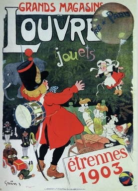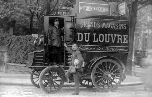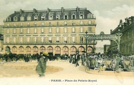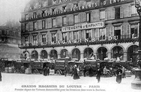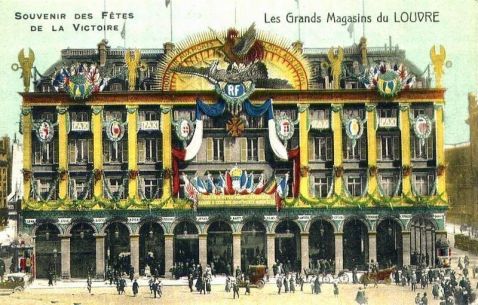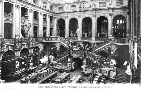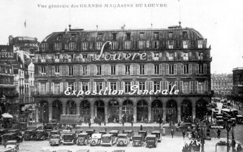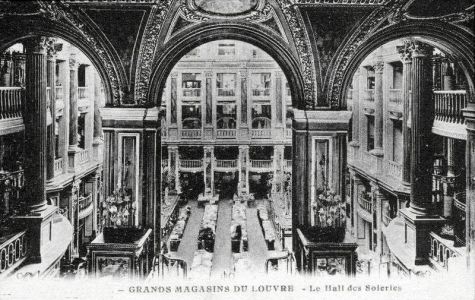 Les Grands Magasins du Louvre ont été crées en 1855 par Alfred Chauchard et Auguste Hériot sous le second empire. Ce magasin a été ouvert au rez-de-chaussée du Grand Hôtel du Louvre construit en 1852 notamment par l'architecte Alfred Armand (1805-188) sur la place du Palais Royal. Financé par les frères Pereire, c’est le tout premier palace parisien construit à la demande du baron Haussmann. En 1875 le magasin est agrandi en rachetant l'ensemble de l'immeuble, occupé par l'Hôtel du Louvre qui est transféré de l'autre côté de la place du Palais-Royal.