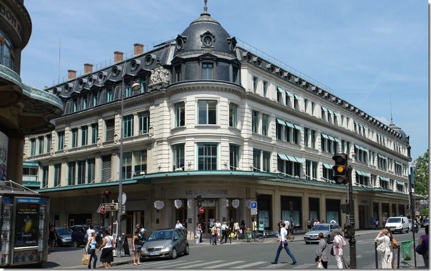 Le premier magasin Au Bon Marché est fondé en 1838 par les frères Paul et Justin Videau, ces derniers s'associent à Aristide Boucicaut et son épouse en 1852 afin de créer un nouveau concept de grand magasin. Un bâtiment est construit en bordure de la rue de Sèvres par l'architecte Louis Charles Boileau (1837-1914) et l'ingénieur Gustave Eiffel (1832-1923) commencés en 1869 le magasin est totalement achevé en 1887. Emile Zola s'inspirera du Bon marché pour écrire "Au Bonheur des Dames".